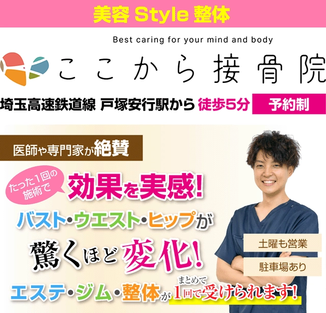 腰痛はゆがみだけでなく、姿勢や筋力がないことも原因かなとは思っていたのですが、ここから整骨院では、骨盤矯正もでき、セルフケアの仕方を教えて頂き筋力もつけられて、体型矯正もできる美容整体というものもあると聞いて、今の私には一石三鳥だと思いお願いしました。